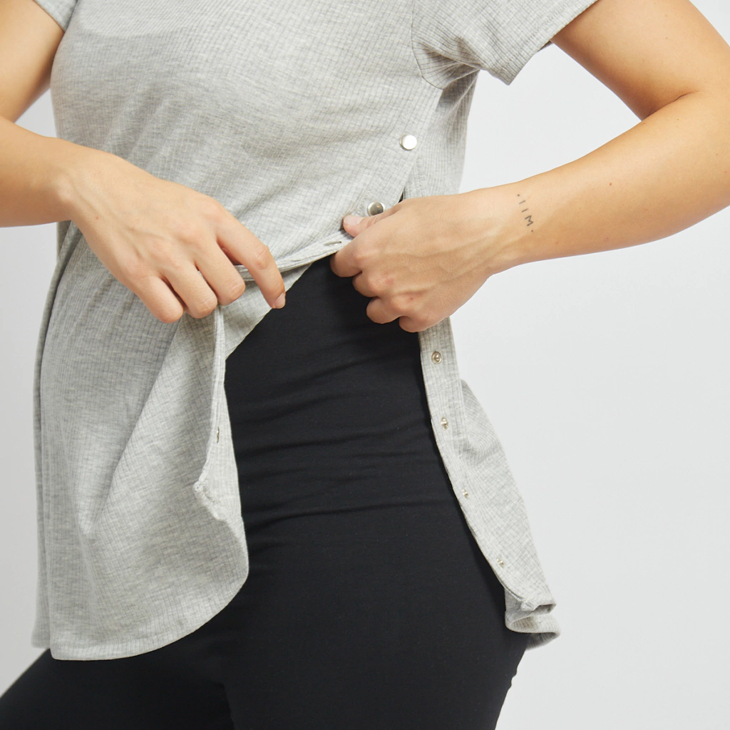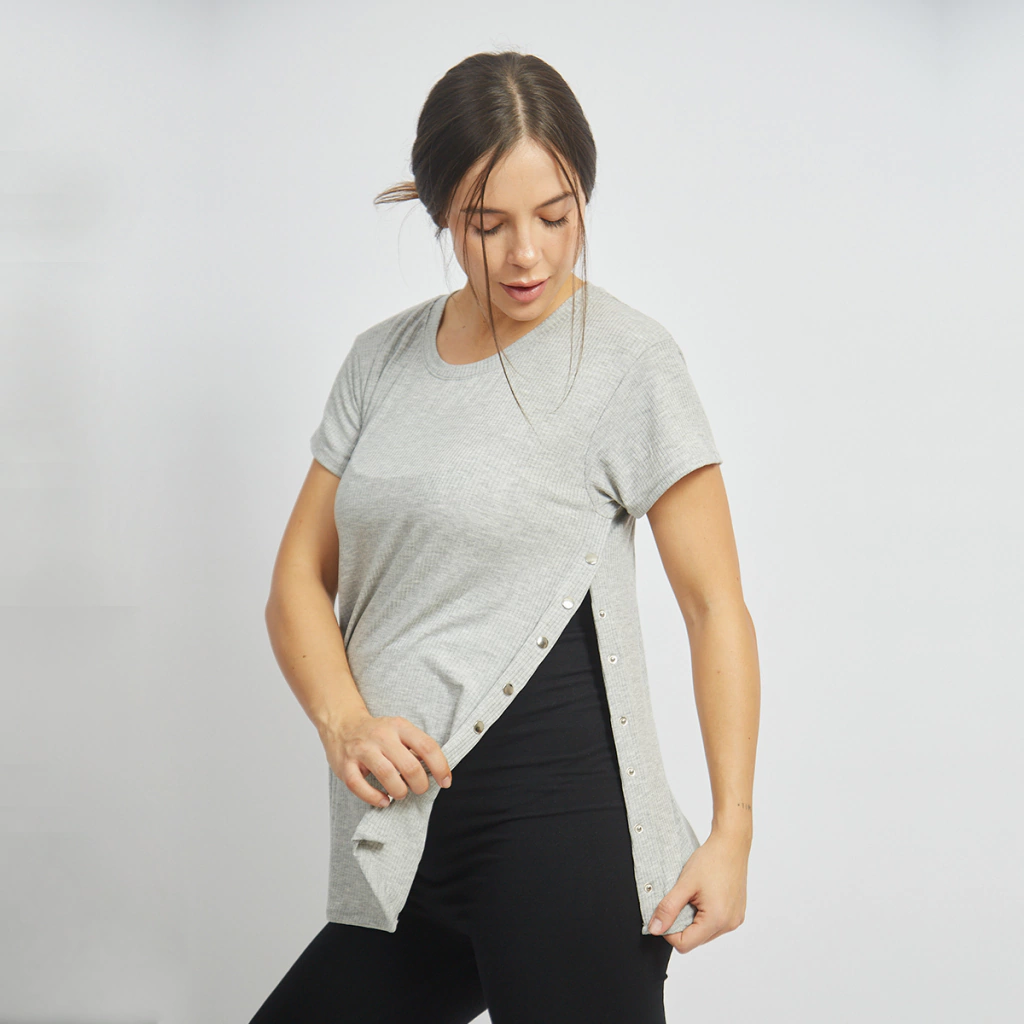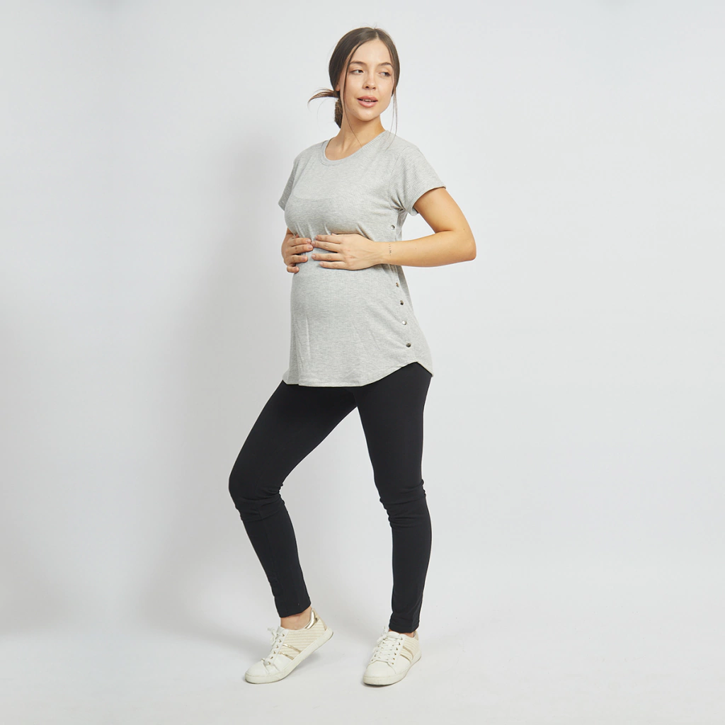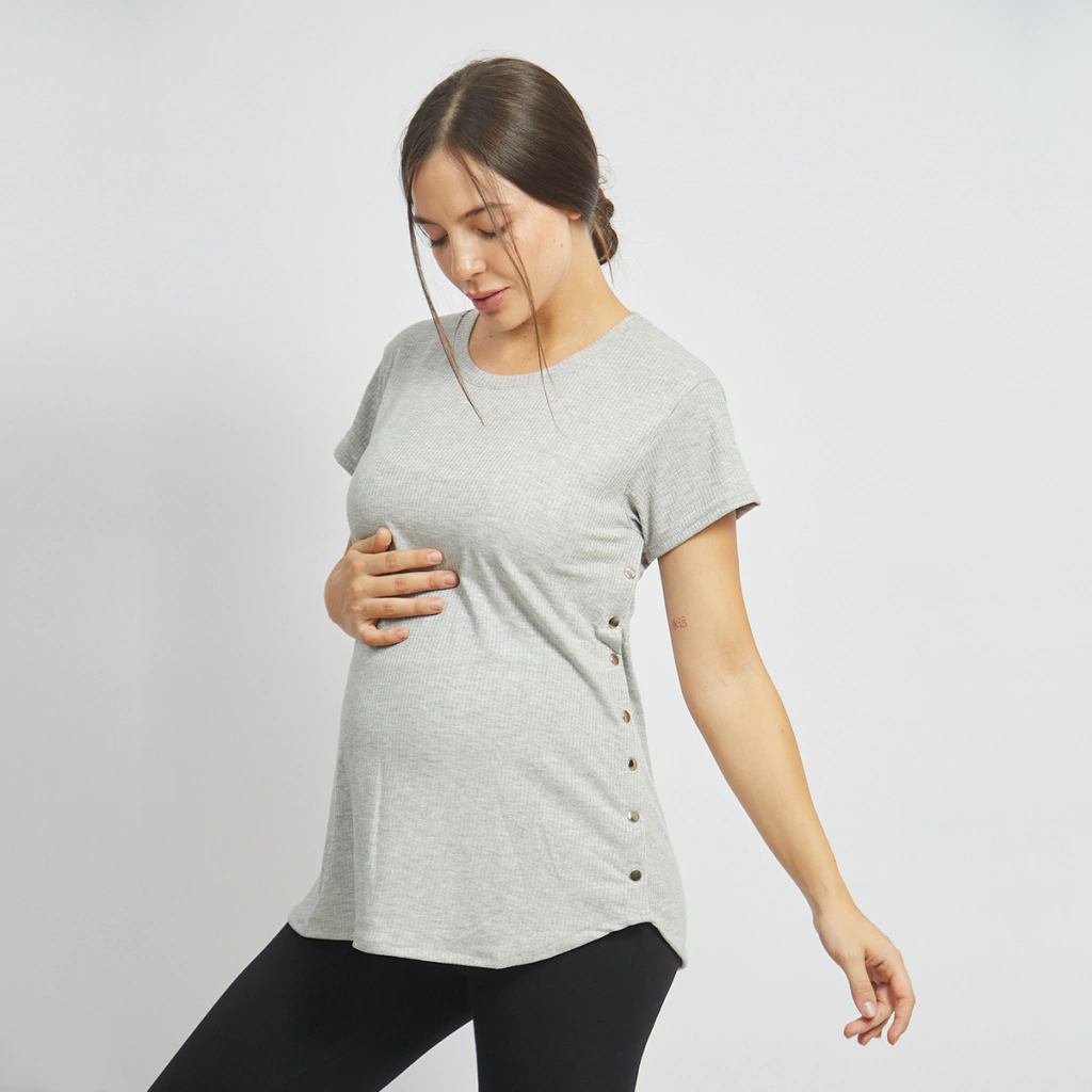 Remera maternal, para embarazo y lactancia. Una prenda súper versátil y canchera a la hora de pensar qué ponerte. Material liviano y elástico. Sus botones laterales te permiten mayor comodidad al momento de la lactancia.